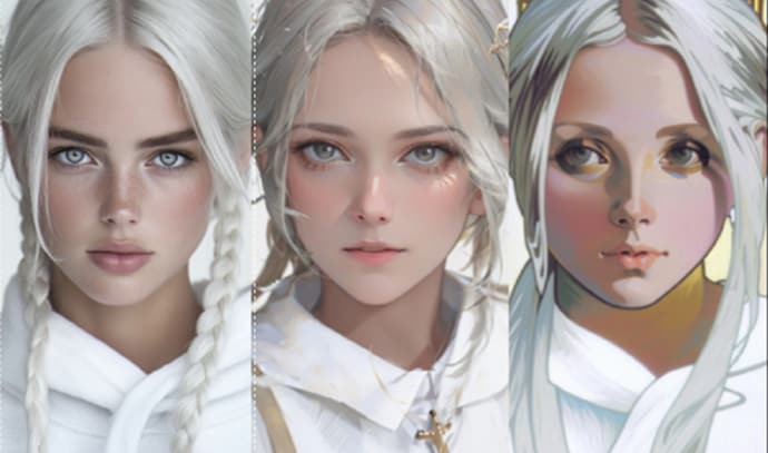 Applica facilmente qualsiasi filtro AI alla tua foto di riferimento per trasferirne lo stile: da cartone animato ad anime, da strega a principessa, da dipinto a olio a Van Gogh, da schizzo a pixel art. Puoi anche modificare le espressioni facciali (da triste a sorridente, da sorpresa a rabbia), aggiungere addominali o muscoli con l’AI, applicare il filtro Barbie al tuo selfie e molto altro.