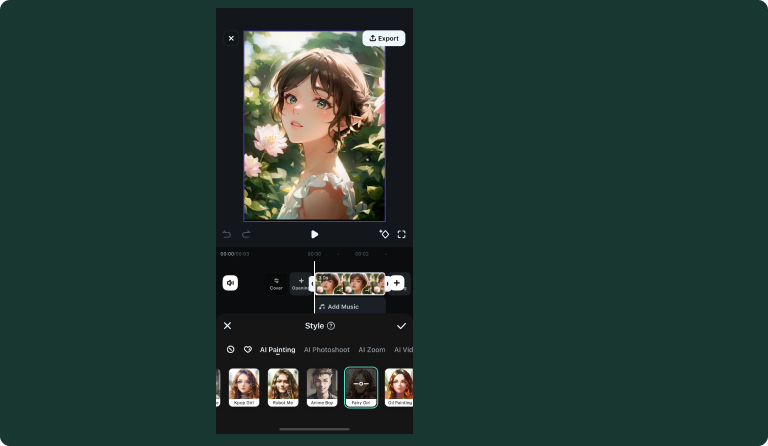 Migliora all'istante i tuoi ritratti con i filtri basati sull'AI di Filmora. Trasformati in una principessa, fata, personaggio anime o angelo con un solo clic — e scopri un look completamente nuovo creato dall’AI. Che tu voglia un’estetica fiabesca, magica o audace, lo strumento di trasferimento di stile immagine AI di Filmora ti permette di reinventare le tue foto con dettagli sorprendenti. Perfetto per foto profilo, progetti creativi o semplicemente per divertirti, questi effetti intelligenti rendono più facile che mai esprimere il tuo stile unico.