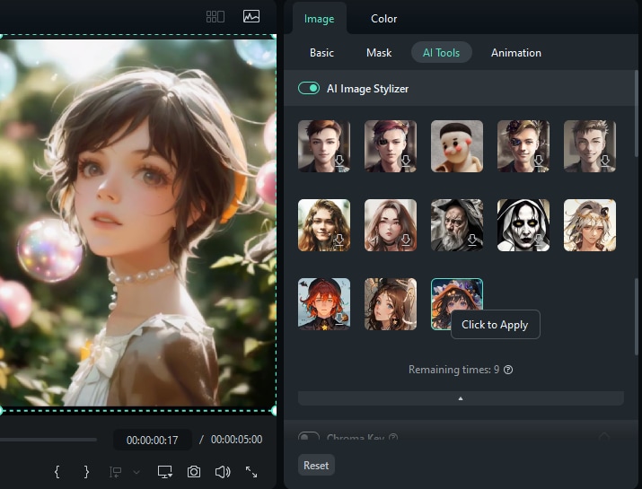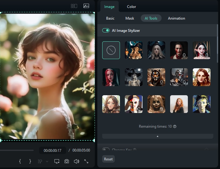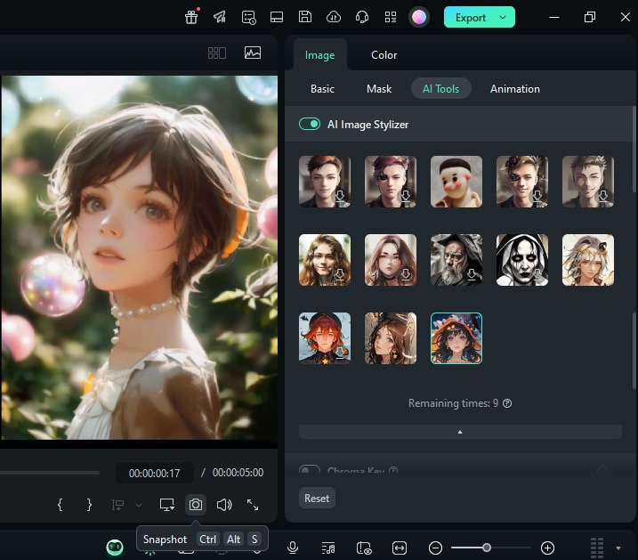 Scopri la magia dello stilista di immagini AI di Filmora ed esplora subito vari filtri AI.