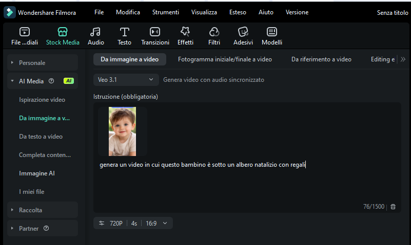 Carica la foto in generatore AI di Filmora e scrivi uno prompt